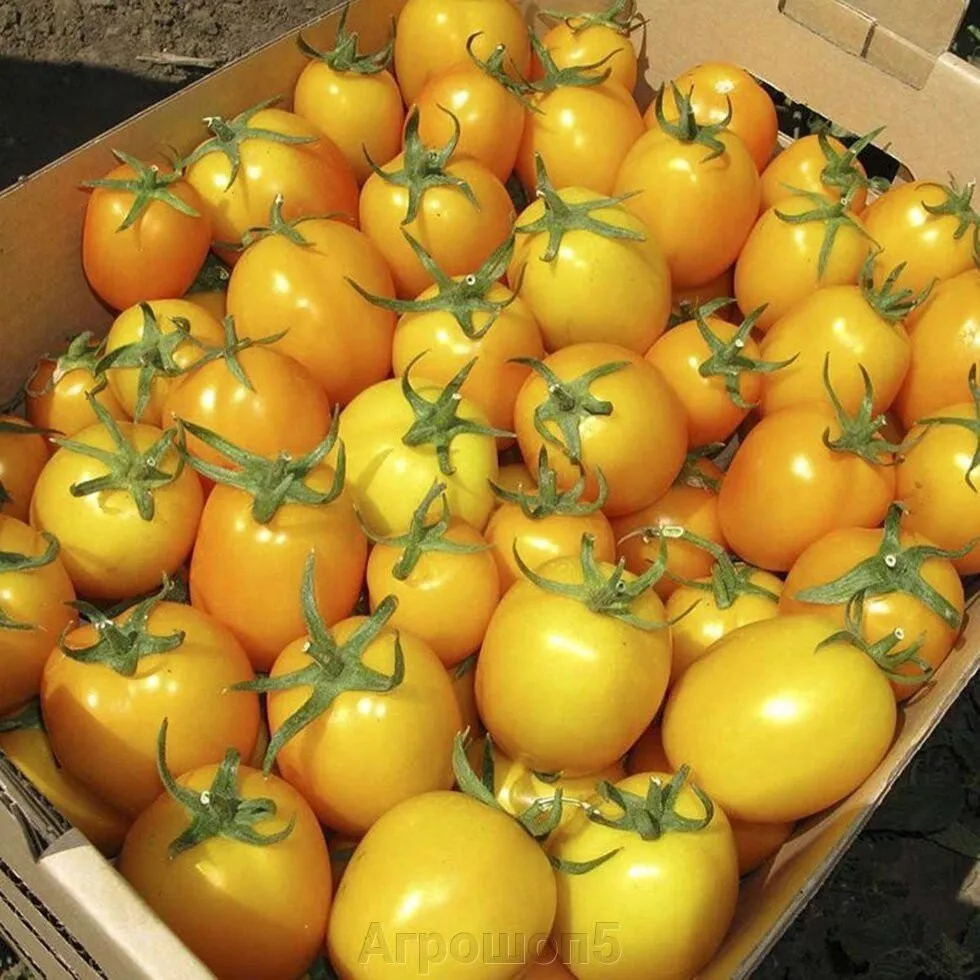 В фазе технической спелости помидоры имеют равномерную светло-зеленую окраску без темного пятна у плодоножки. По мере созревания они приобретают яркий, солнечно-желтый цвет, который и дал название сорту.