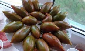 | Цвет зрелого плода | Карамельно-коричневый с зелеными полосами, глянцевый | Нестандартная, декоративная окраска. Полосы могут быть более или менее выражены в зависимости от степени освещенности и температуры. |