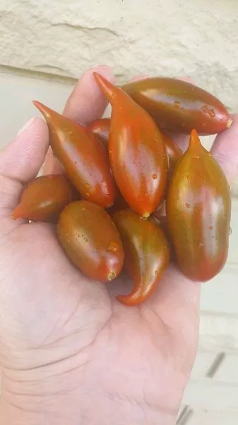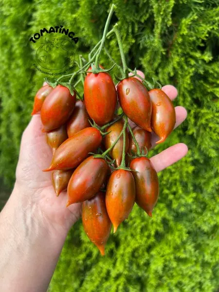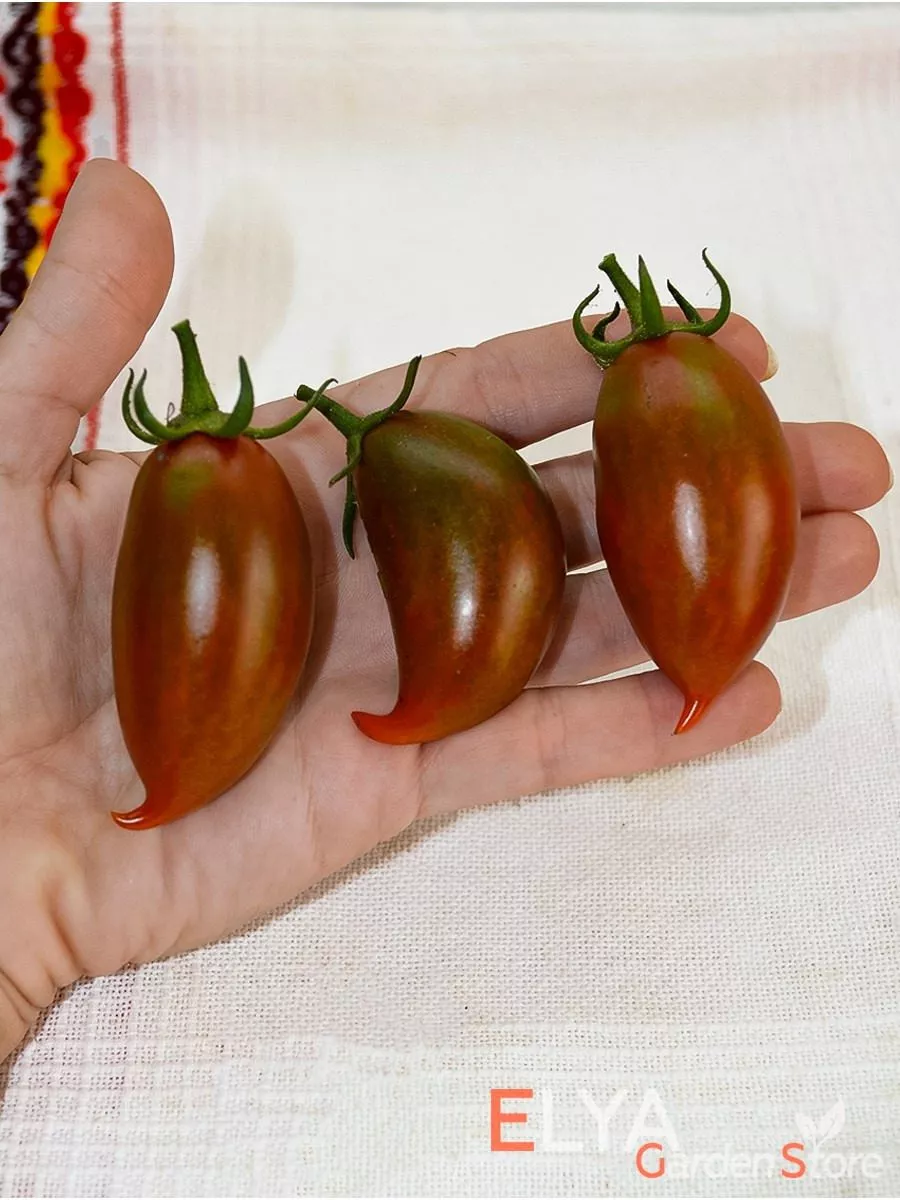 Форма плода соответствует типу «сливка», но с характерной отличительной деталью — длинным, часто изогнутым или крючковатым носиком. Такая вытянутая конфигурация неслучайна. Она идеально подходит для цельноплодного консервирования: томаты плотно и экономно укладываются в стеклянную тару.