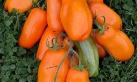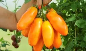 Яркий, «солнечный» цвет зрелого плода обусловлен высоким содержанием каротиноидов, в частности бета-каротина. Глянцевая поверхность усиливает визуальный эффект, делая томаты особенно привлекательными. Именно эта комбинация — нестандартная форма, плотная консистенция и яркая окраска — делает плоды идеальными для сервировки и свежих салатов.
