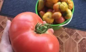 Сбор урожая этого гибрида имеет свои нюансы, обусловленные его характеристиками. Поскольку сорт индетерминантный и высокорослый, плодоношение растянуто во времени. Снимать томаты начинают, когда они достигают полной биологической спелости, о чем свидетельствует равномерный розовый окрас, заявленный в описании сорта.