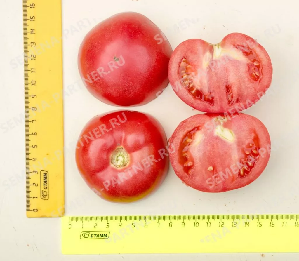 Назначение сорта — употребление в свежем виде, и здесь он раскрывается полностью. Плоскоокруглые, слаборебристые плоды с насыщенным розовым цветом имеют гармоничный вкус и выраженный томатный аромат. Мякоть плотная, но сочная, что делает эти томаты идеальными для нарезки, летних салатов, бутербродов и гамбургеров.