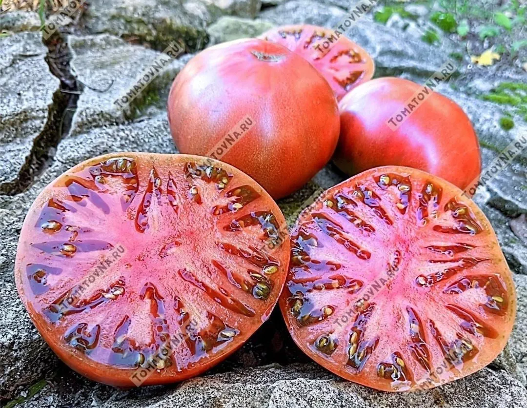 - Мякоть и семена: Мякоть мясистая (многокамерная), сочная, с небольшим количеством семян. Цвет мякоти обычно соответствует основному окрасу кожицы — темно-красный или бордовый.