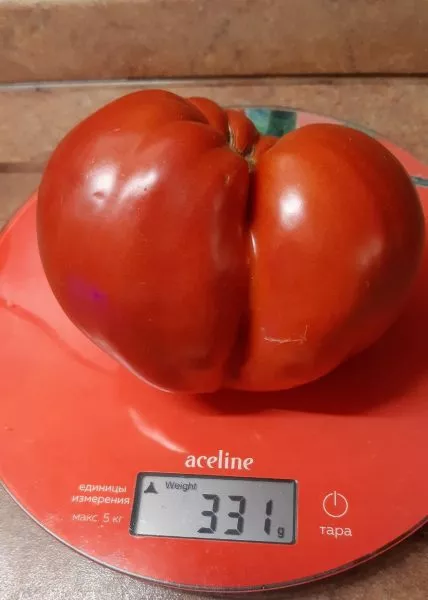Средняя масса плода составляет 200-400 граммов, что уже относит сорт к крупноплодным. Однако ключевая особенность — склонность к образованию гигантов на первых двух-трех кистях, где отдельные экземпляры могут достигать 500-600 граммов. Такие плоды-рекордсмены часто имеют более выраженную ребристость в области плодоножки.