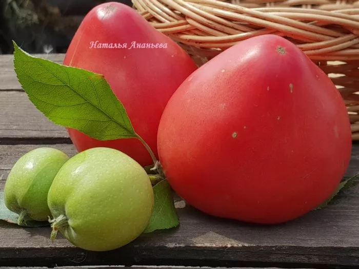 Плоды имеют стабильную сердцевидную форму с четко выраженным заостренным кончиком («носиком»). В стадии технической спелости окраска равномерная, зеленая с более темным пятном у плодоножки. При полном созревании томаты приобретают глубокий красно-малиновый цвет, что является визуальным индикатором высокого содержания сахаров и каротиноидов, в частности ликопина.