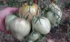 Гигантские экземпляры с первых кистей лучше снимать, придерживая свободной рукой сам плод, чтобы его вес не оторвал часть стебля. Старайтесь не сдавливать помидоры пальцами, так как на нежной кожице могут остаться вмятины.