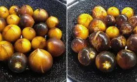 Главная отличительная черта — это окраска, обусловленная высоким содержанием антоцианов. Эти природные пигменты являются сильными антиоксидантами и придают кожице фиолетовый оттенок. В технической спелости плоды зеленые с темно-фиолетовым плечиком у плодоножки.