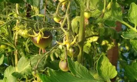 Подвязывать стебель к вертикальной опоре (шпалере, колу) нужно начинать рано, когда растение достигнет 30-40 см в высоту. Фиксацию проводят мягкими материалами (ленты, шпагат) свободной петлей, не перетягивая стебель. По мере роста подвязку повторяют, а также фиксируют тяжелые кисти с плодами, чтобы они не обломились под собственным весом.