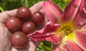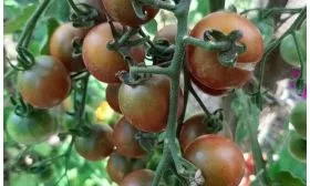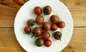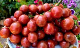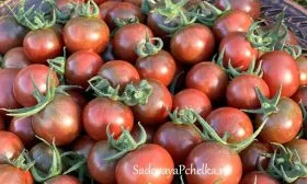 - В свежем виде. Это идеальный салатный томат. Его сладость и экзотическая красно-коричнево-пурпурная окраска делают блюда визуально привлекательными и вкусными. Небольшой размер плодов, 15-20 грамм, удобен для сервировки и фуршетных нарезок.