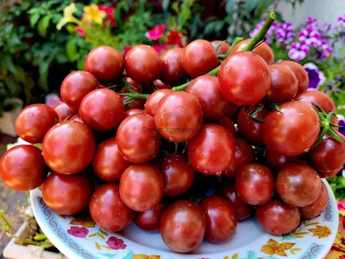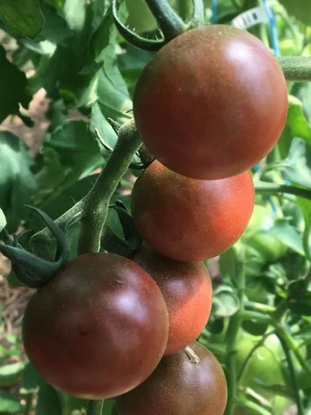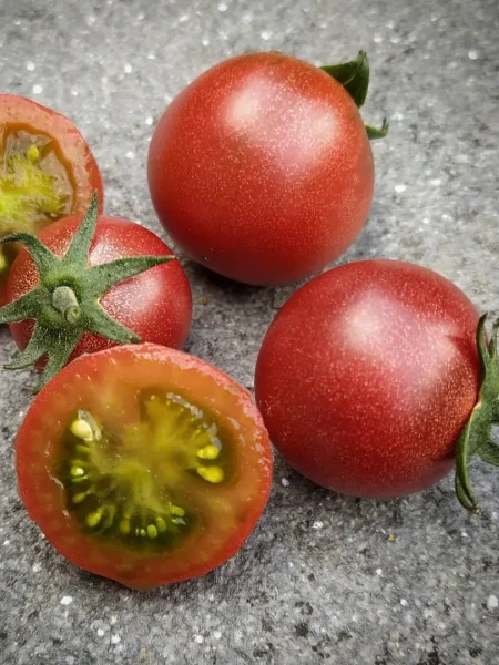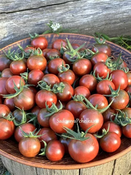 - В свежем виде. Это идеальный салатный томат. Его сладость и экзотическая красно-коричнево-пурпурная окраска делают блюда визуально привлекательными и вкусными. Небольшой размер плодов, 15-20 грамм, удобен для сервировки и фуршетных нарезок.
