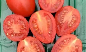 - Вяление и сушка. Не чрезмерная сочность ускоряет процесс удаления влаги, в результате получаются качественные, мясистые вяленые томаты.