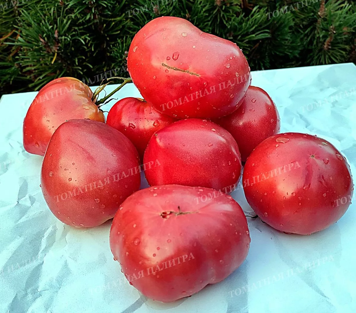 Кожица у плодов плотная, но не грубая, что предохраняет их от растрескивания при перепадах влажности и обеспечивает хорошую лежкость для крупноплодного сорта. Внешний вид созревших томатов — выровненный, товарный, что вместе с впечатляющим размером делает урожай действительно эффектным.
