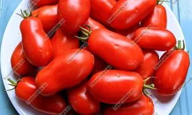 Плоды являются ключевой отличительной чертой сорта. Их форма — удлиненный цилиндр с характерным небольшим носиком на вершине — относится к типу «сливка» или «пальчиковая». Такая конфигурация не только придает узнаваемый внешний вид, но и имеет практическое значение: плотная мякоть и малое количество семенных камер делают эти томаты идеальными для цельноплодного консервирования, вяления и сушки.