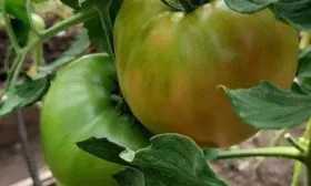 Для индетерминантных высокорослых сортов, к которым относится Фуджи, особенно актуальна практика съема плодов в стадии бланжевой спелости. Это этап, когда томат достиг своего максимального размера, а его окраска только начинает меняться с зеленой на розовато-бурую.