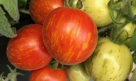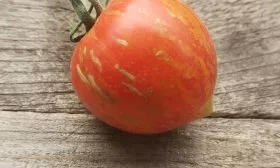 Главная «изюминка» — это окраска. Зрелый томат обладает насыщенным красным основным цветом, по которому проходят контрастные золотисто-желтые штрихи и полосы. Эта пестрая расцветка является надежным индикатором полной спелости. Яркое проявление полосатого рисунка сигнализирует о том, что плод набрал максимум сахара и аромата.