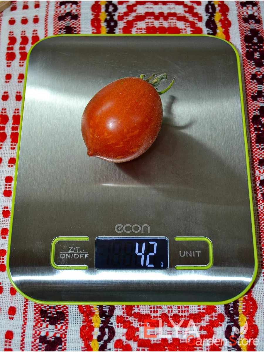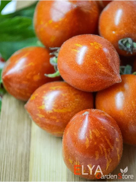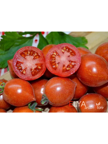 Форма плодов — овальная с характерным носиком — идеально подходит для засолки и консервирования целиком, так как обеспечивает плотную укладку в банку. Средняя масса плода от 25 до 50 грамм соответствует стандартам томатов черри и коктейльного типа, что предопределяет их кулинарное назначение.