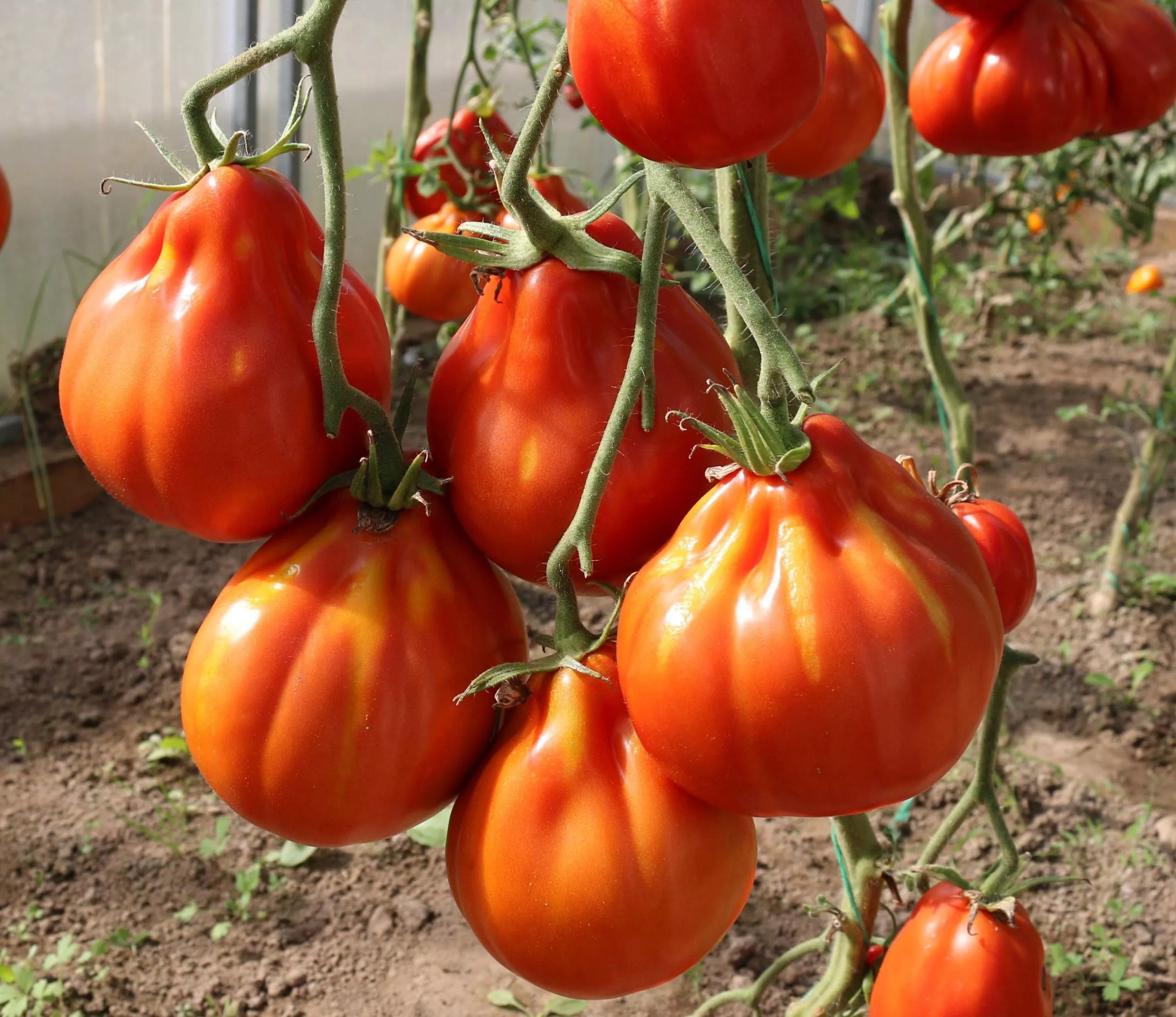Сбор плодов начинают в стадии технической (бланжевой) спелости, когда они приобретают бурый оттенок, или при полном окрашивании. Из-за выраженной ребристости и тонкой кожицы в области складок эти томаты особенно чувствительны к надавливанию. Снимать их нужно крайне аккуратно, стараясь не сжимать пальцами, и обязательно с плодоножкой — это минимизирует повреждение и продлевает лежкость.
