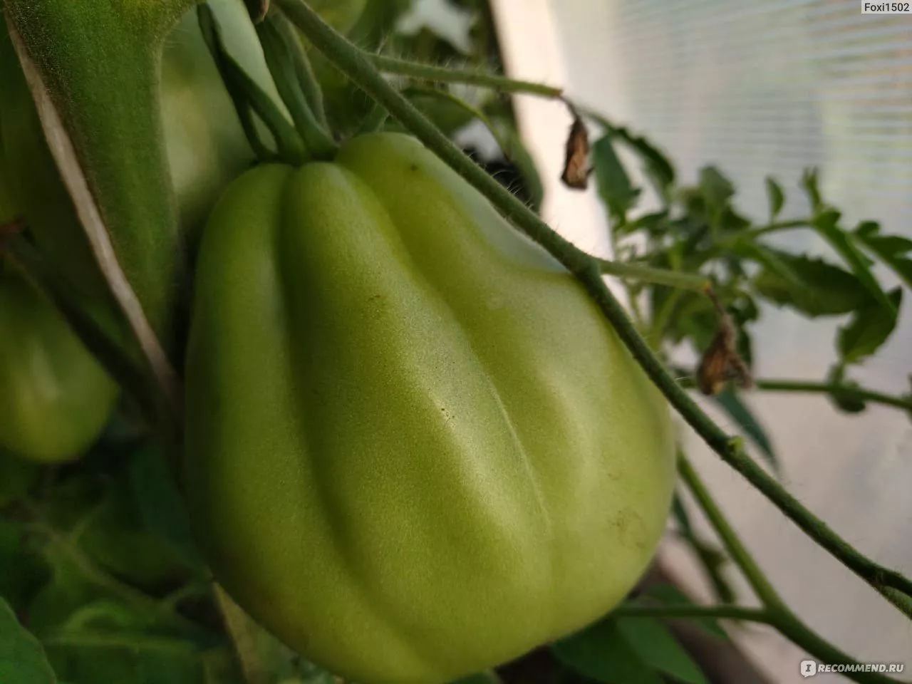 Плодоножка (сочленение) имеет сложное строение, что в сочетании с ребристой поверхностью требует аккуратности при сборе урожая, чтобы не повредить соседние плоды. Визуально каждый томат получается уникальным, что делает сорт особенно привлекательным для садоводов, ценящих не только вкус, но и эстетику урожая.