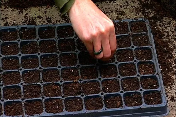 - Когда почва остынет до комнатной температуры, сделайте бороздки или отверстия глубиной 0,5 см и высейте семена с интервалом не менее 1 см.