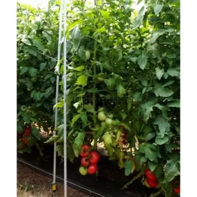 По мере роста стебель подвязывают к вертикальной шпалере мягкой бечевкой или клипсами. Когда растение достигнет верха шпалеры (обычно в начале августа), точку роста (верхушку главного стебля) прищипывают. Это останавливает вертикальный рост и перенаправляет ресурсы растения на налив и созревание уже завязавшихся плодов.