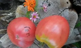 Окрас зрелого томата — насыщенный средне-розовый с глянцевым блеском. Легкая, неконтрастная полосатость является сортовым признаком и добавляет плодам декоративности. Мякоть многокамерная, очень плотная и мясистая, с высоким содержанием сухих веществ. На изломе она сахарная, семенных камер мало, а семян небольшое количество.