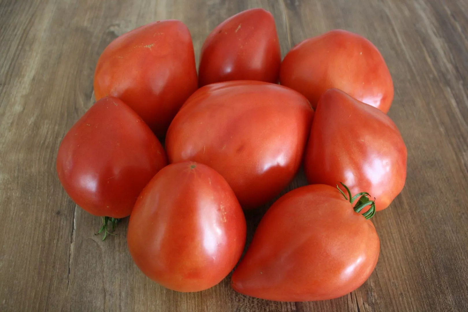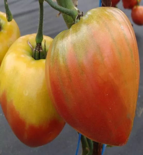 | Форма плода | Удлиненно-грушевидная | Удлиненная форма в сочетании с крупным размером делает плоды очень эффектными. Такая форма может быть менее удобной для нарезки кружками, но идеальна для салатов, где томаты часто режут дольками. |