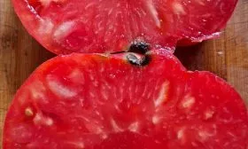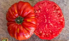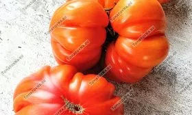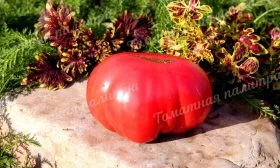 В фазе технической спелости окраска меняется на равномерный, насыщенный красный цвет. Плоды многокамерные, с большим количеством семенных камер и сока. Из-за рекордной массы, которая у отдельных плодов может достигать 1.5-2 кг, они часто деформируются, приобретая причудливые очертания. Такая деформация под собственным весом — обычное явление для томатов-гигантов и не считается признаком заболевания или нехватки питания.