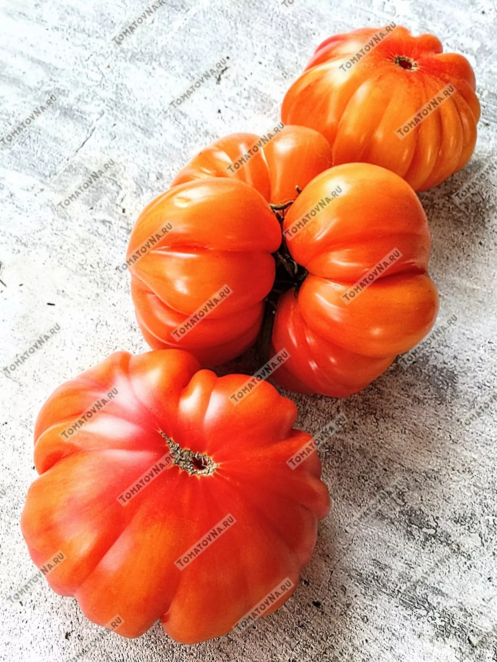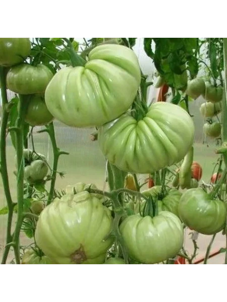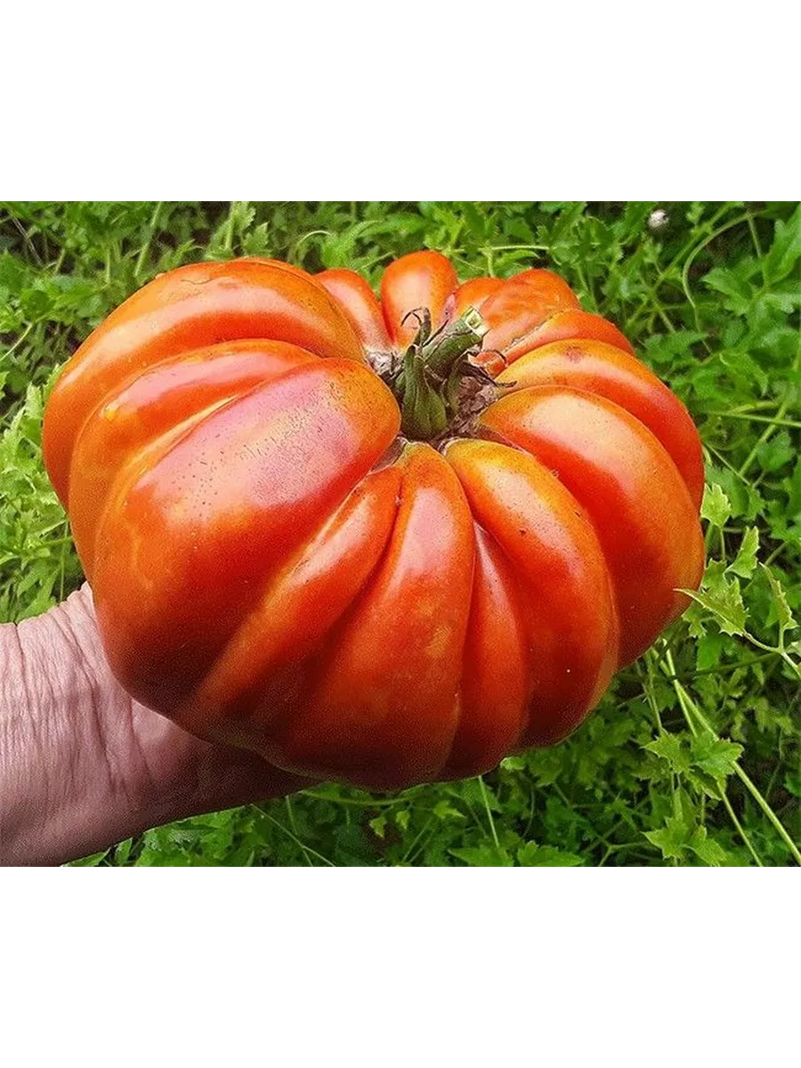 Форма плодов плоскоокруглая, что в сочетании с их размером часто приводит к образованию выраженной ребристости у плодоножки — это сортовой признак, а не дефект. Для достижения максимального размера и выравненности плодов практикуют нормирование количества завязей в кисти, оставляя обычно 3-4 наиболее развитых цветка.