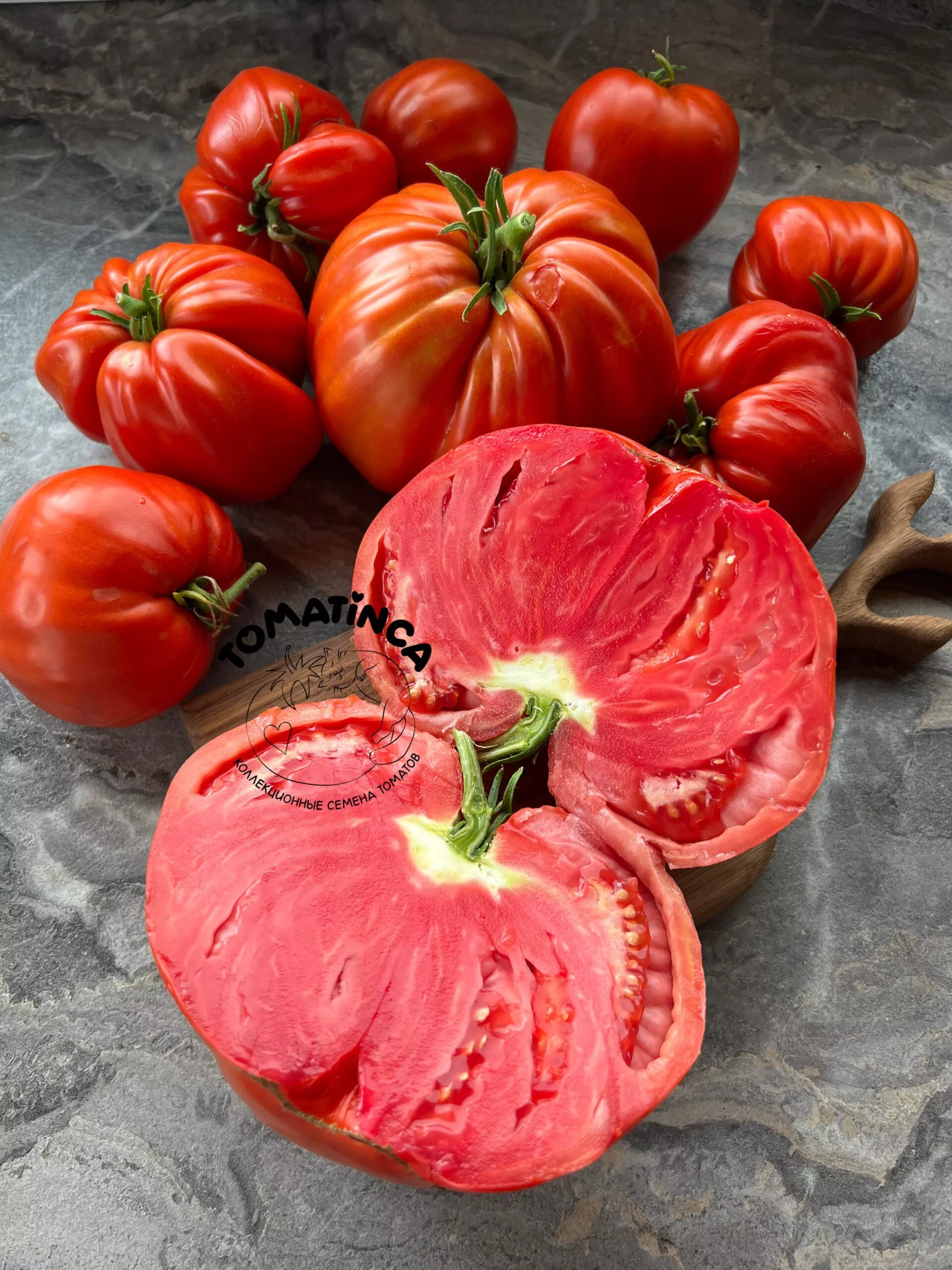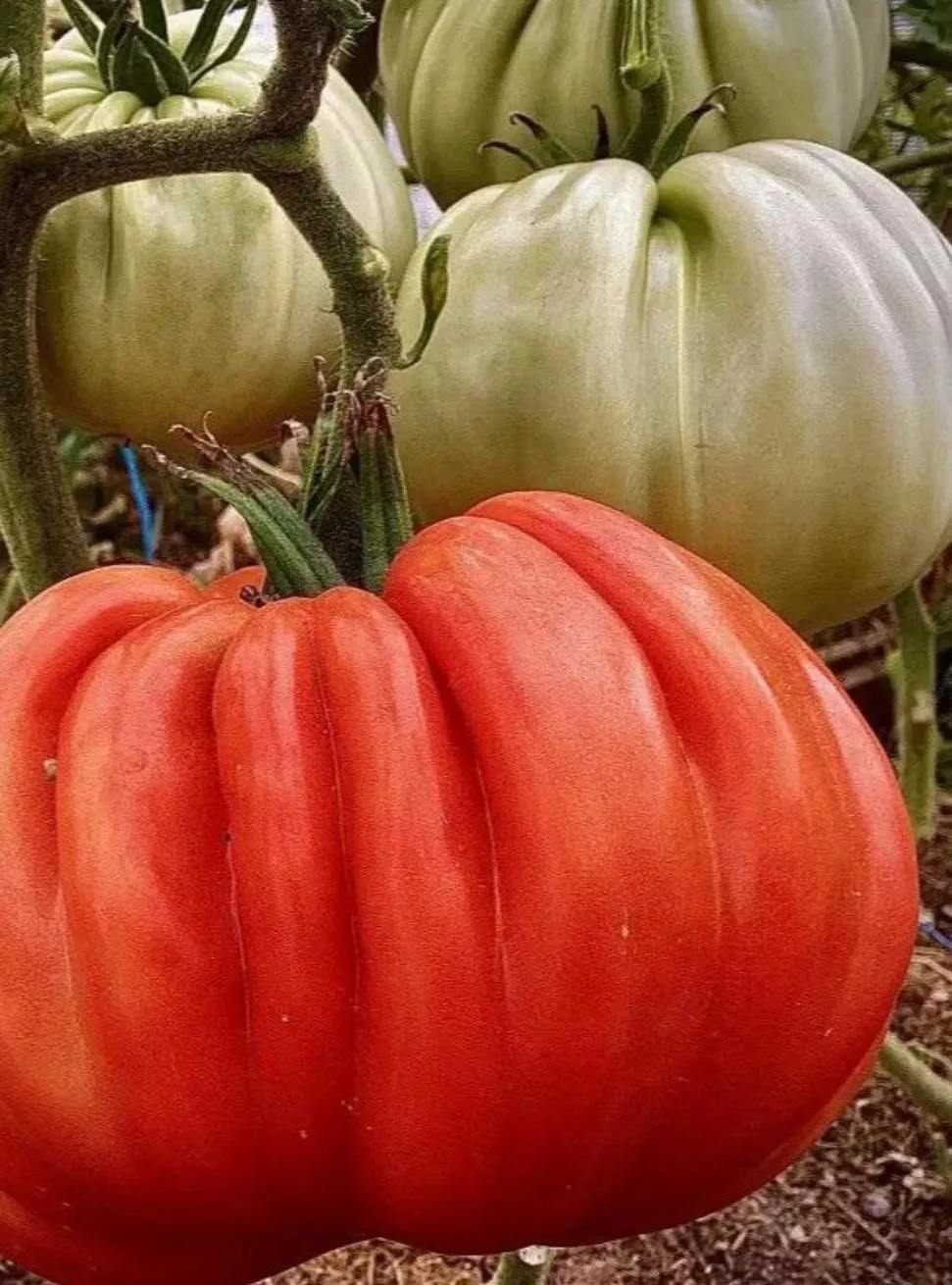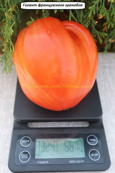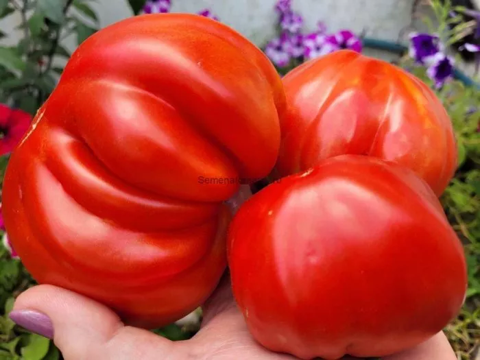 Плоды, достигающие массы 800 граммов и более, часто имеют неправильную, ребристую плоскоокруглую форму. Это не является браком, а характерная сортовая особенность, свидетельствующая об их гигантских размерах. Такие томаты формируются в нижних кистях, тогда как в верхних плоды обычно мельче и имеют более классическую округлую форму.