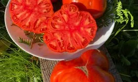 Мякоть исключительно плотная, сахаристая на изломе и многокамерная. При этом она остается сочной, но не водянистой. Малое количество семян в таких крупных плодах — еще один признак сортовой принадлежности. Плоды демонстрируют типичную для крупноплодных томатов особенность: они могут иметь неидеальную форму, особенно первые, но это не сказывается на их внутренних качествах.