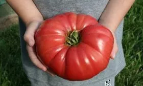 Плоды «Гигантистики» являются ярким примером биф-томатов (beefsteak) – крупных, мясистых, с многокамерной структурой. Плоскоокруглая форма с заметной ребристостью у плодоножки – их визитная карточка. Ребристость часто более выражена у самых крупных экземпляров.