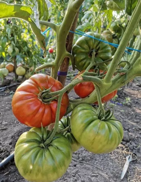 Созревание таких плодов часто происходит неравномерно внутри одной кисти и может быть растянутым. Нижние, самые первые и крупные помидоры, обычно снимают чуть раньше полной спелости (в стадии бланжевой спелости), чтобы они дозрели в помещении и не перегружали куст. Это также стимулирует налив следующих плодов.