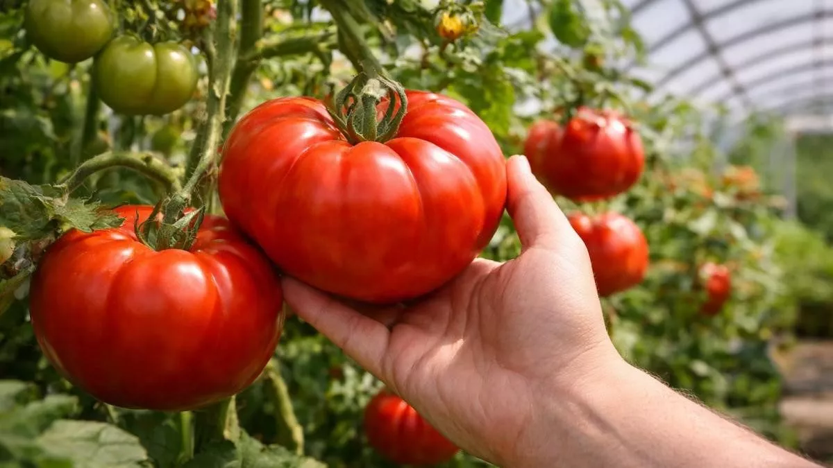 К сбору нужно подходить аккуратно, чтобы не повредить нежную кожицу крупных плодов. Срывайте томат вместе с плодоножкой, аккуратно прокручивая его у основания. Если плодоножка не отделяется легко, лучше срезать плод секатором, оставляя небольшой хвостик. Это минимизирует риск образования ранки, через которую может проникнуть инфекция.