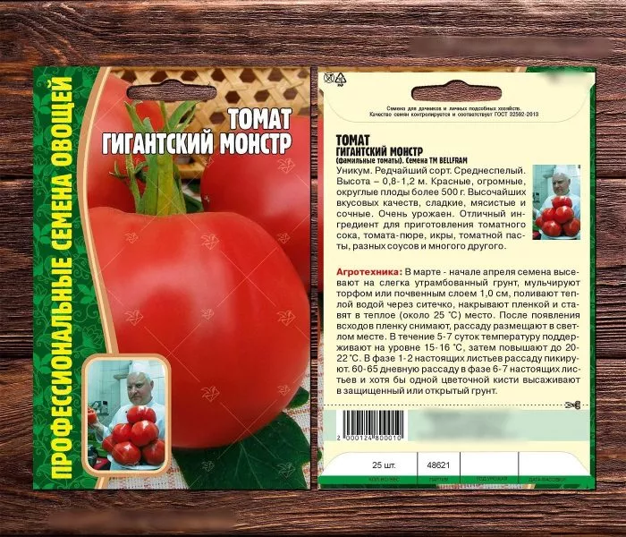 Томат Гигантский Монстр — это сорт, а не гибрид. Это ключевое отличие дает огородникам важное практическое преимущество: семена из собственноручно выращенных плодов сохраняют сортовые признаки. Их можно собирать, правильно обрабатывать и использовать для посева в следующие сезоны, что невозможно с гибридными формами (F1).