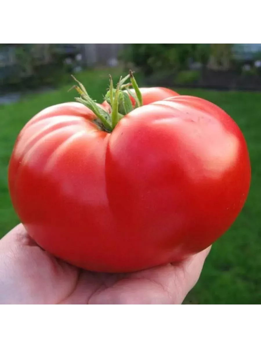 Данная разновидность относится к популярной группе «биф-томатов» (от англ. beef — говядина). Для этих томатов характерны не просто крупные, а именно мясистые, многокамерные плоды с небольшим количеством семян и сочной, плотной мякотью. Именно такие качества заявлены в описании сорта.