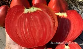 Окрас меняется по мере созревания: от светло-розового в технической спелости до насыщенного малинового при полном биологическом созревании. Мякоть обладает исключительной плотностью и мясистостью, она сахаристая на изломе, с минимальным количеством семян и соковых камер. Такая структура, типичная для биф-томатов, обеспечивает высокое содержание сухих веществ.