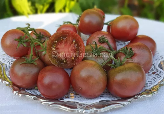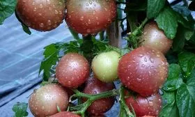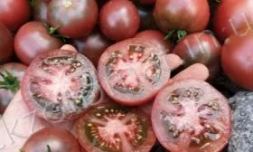 Сбор проводят выборочно, по мере окрашивания томатов. Ключевая особенность — плоды наливаются и приобретают свой уникальный бархатный цвет постепенно. Изначально зеленое пятно у плодоножки сначала переходит в темно-красный, а затем в насыщенный шоколадно-бурый оттенок.
