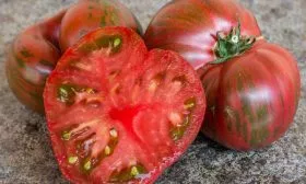 - Свежие салаты и нарезка. Сорт идеален для этого. Плоды не только вкусны, но и создают визуальный акцент благодаря контрастной окраске — темно-розовой с шоколадным оттенком и зеленоватыми плечиками.