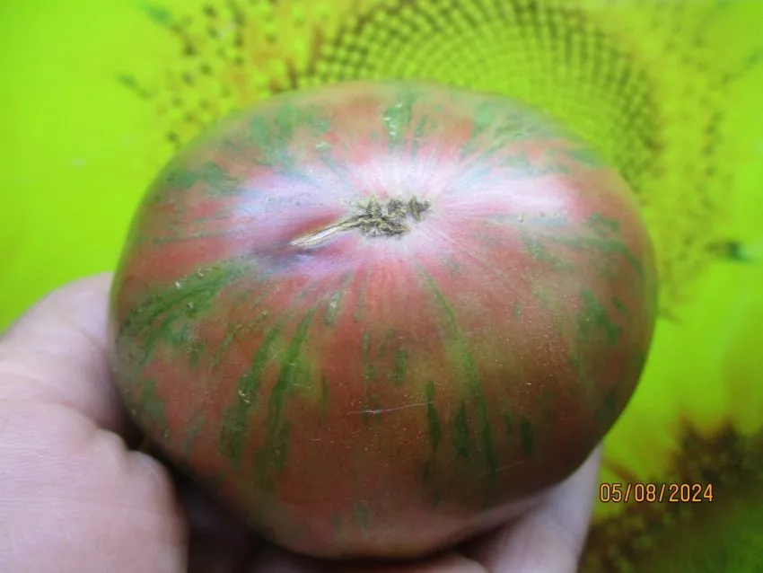 Главная отличительная черта этих томатов — уникальная, сложная окраска, которая меняется по мере созревания. В технической спелости плоды имеют классический зеленый цвет с выраженным темным пятном у плодоножки. Этот этап важен для тех, кто планирует сбор для дозаривания.