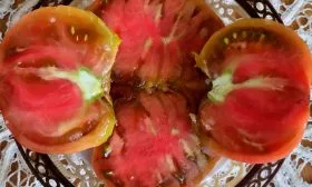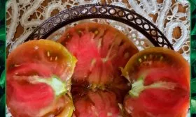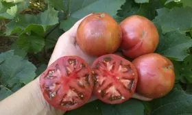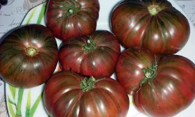 Именно тогда плоды приобретают характерный розово-пурпурный фон с контрастными оливково-зелеными полосами и насыщенный сладкий вкус с едва уловимой кислинкой. Собирать томаты в этой стадии — идеальный вариант для немедленного употребления или переработки.