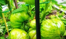 Внешний вид куста с многочисленными тяжелыми, полосатыми плодами делает этот сорт высокодекоративным. Он может стать украшением не только грядки, но и высокого контейнера или теплицы, где демонстрирует свой максимальный рост.