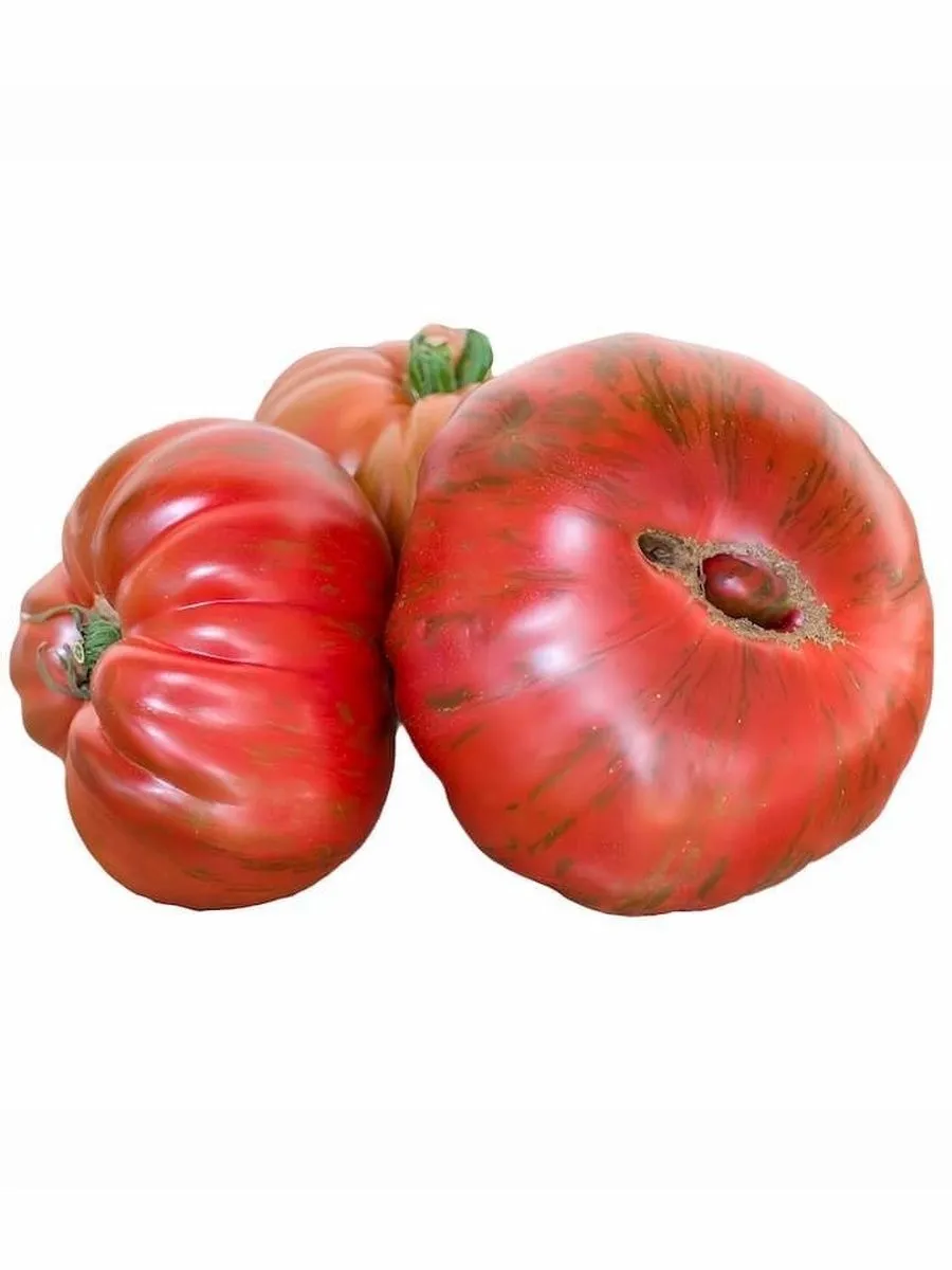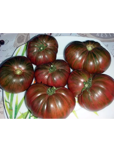Форма плодов плоскоокруглая, часто с хорошо заметной ребристостью, особенно у основания. Такая ребристость характерна для многих исторических (семейных) сортов томатов. Плоды формируются в кистях, обычно по 3-5 штук в каждой.