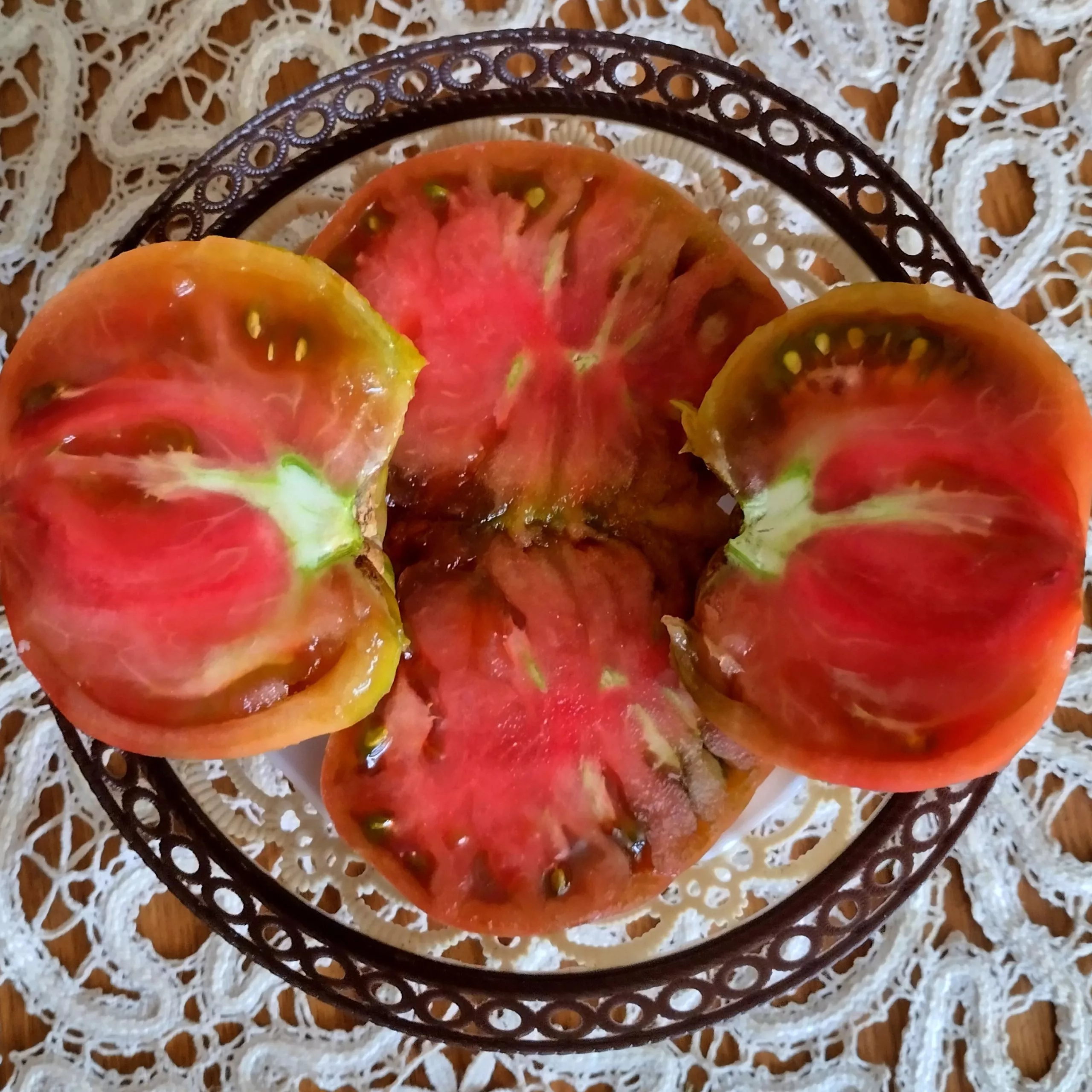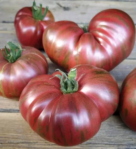Именно тогда плоды приобретают характерный розово-пурпурный фон с контрастными оливково-зелеными полосами и насыщенный сладкий вкус с едва уловимой кислинкой. Собирать томаты в этой стадии — идеальный вариант для немедленного употребления или переработки.