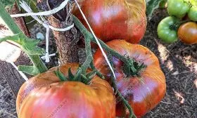 - Обязательно подвязывайте не только главный стебель, но и тяжелые кисти. Под весом плодов, достигающих 350 граммов, плодовые ветки могут обломиться.