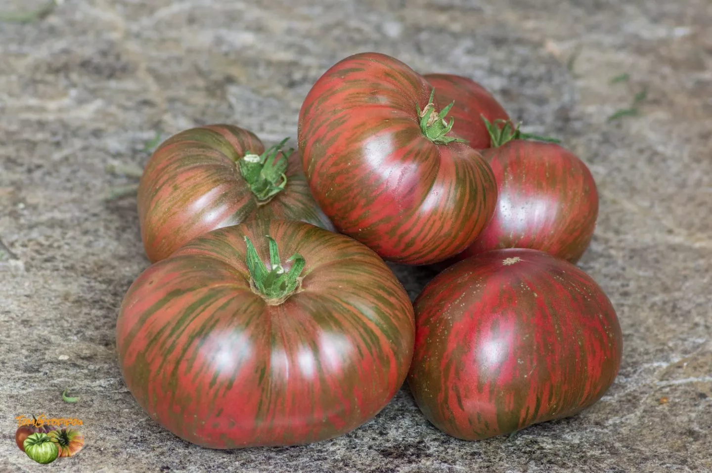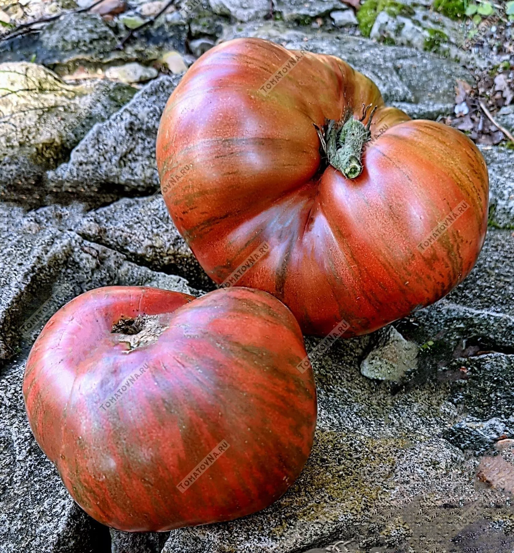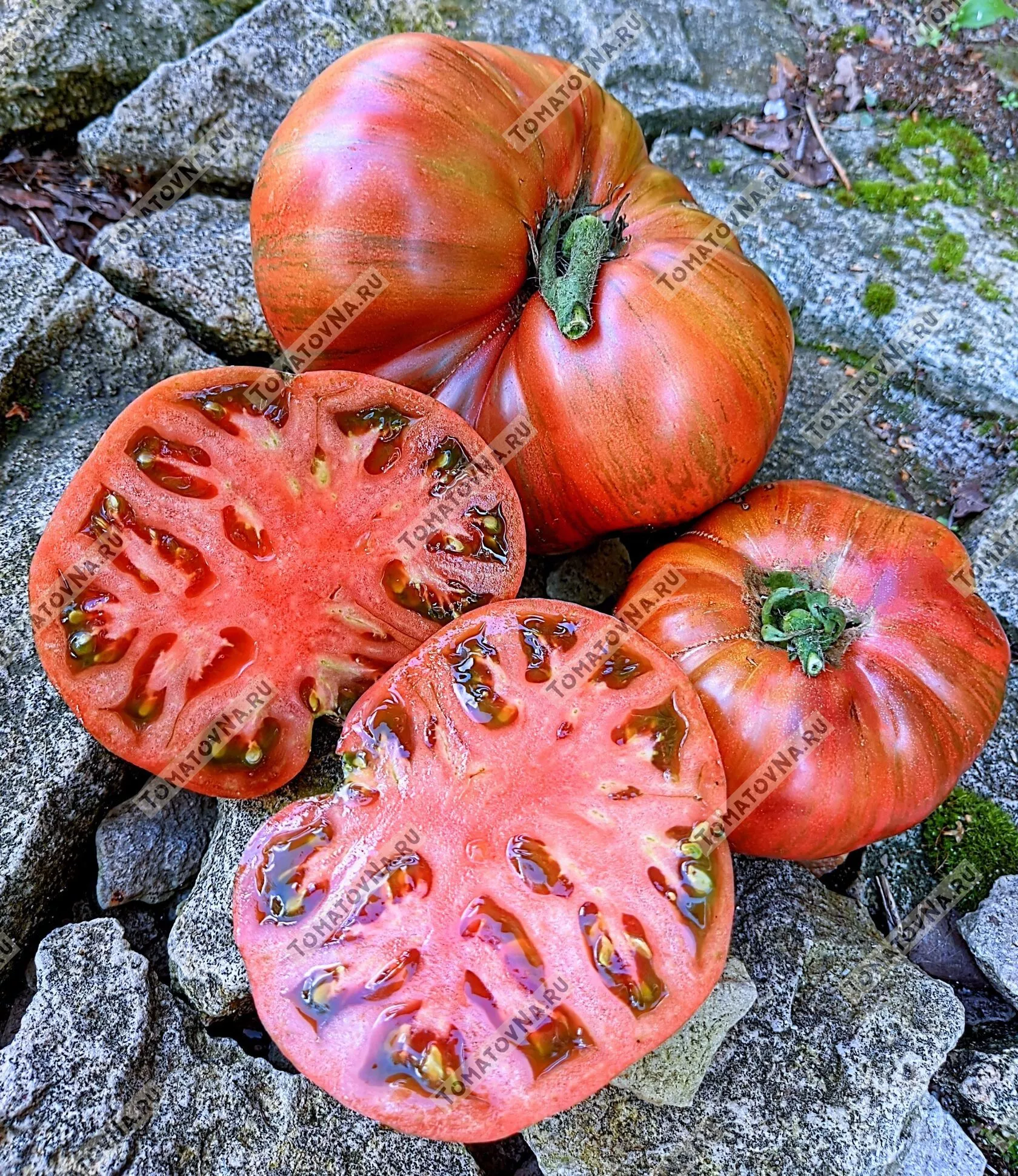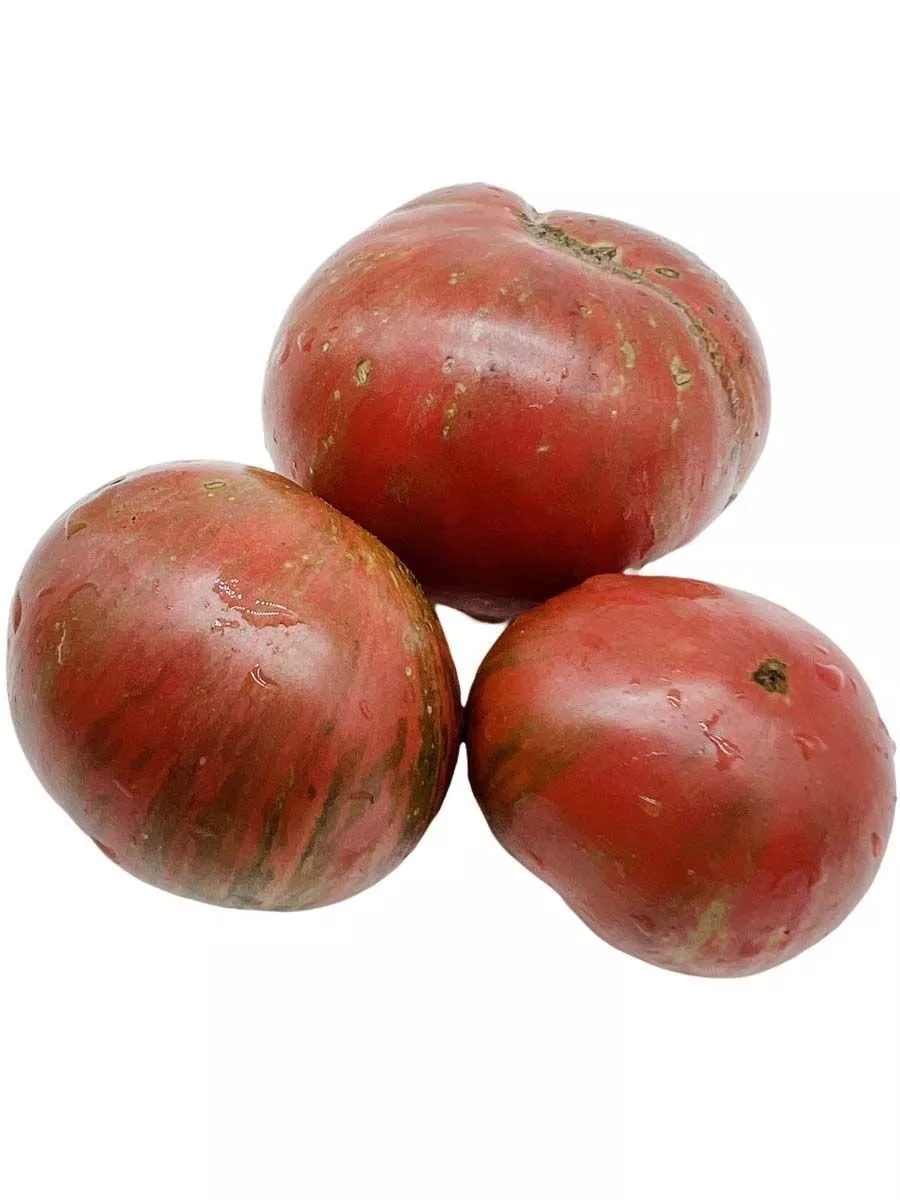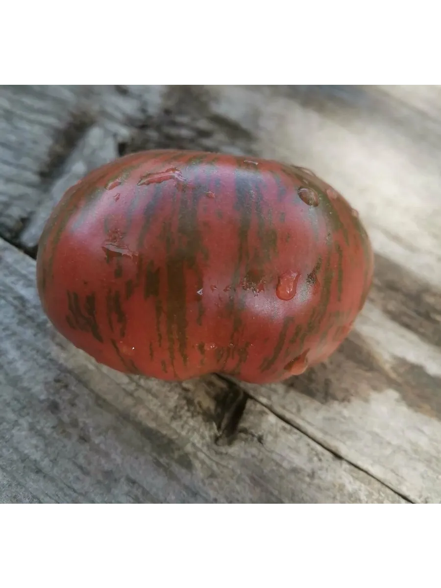 Полностью вызревший томат выглядит как мраморный или полосатый, с переливчатым эффектом. Окраска может варьироваться от плода к плоду даже на одном кусте, что только добавляет сорту визуальной привлекательности. Форма, как указано в характеристиках, плоскоокруглая, часто с выраженными ребрами – так называемыми «плечиками», которые придают плоду солидный, классический вид.