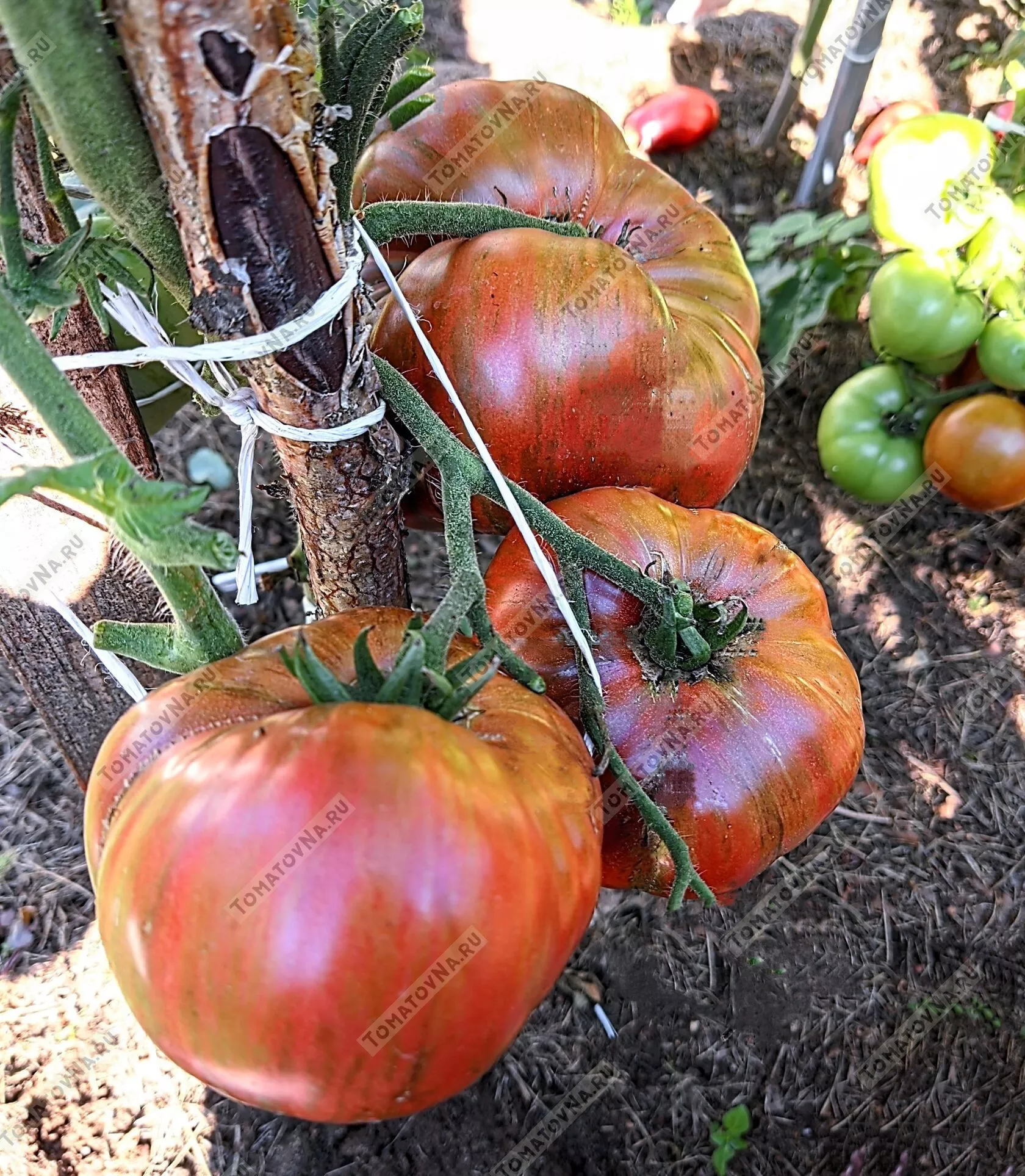 - Обязательно подвязывайте не только главный стебель, но и тяжелые кисти. Под весом плодов, достигающих 350 граммов, плодовые ветки могут обломиться.