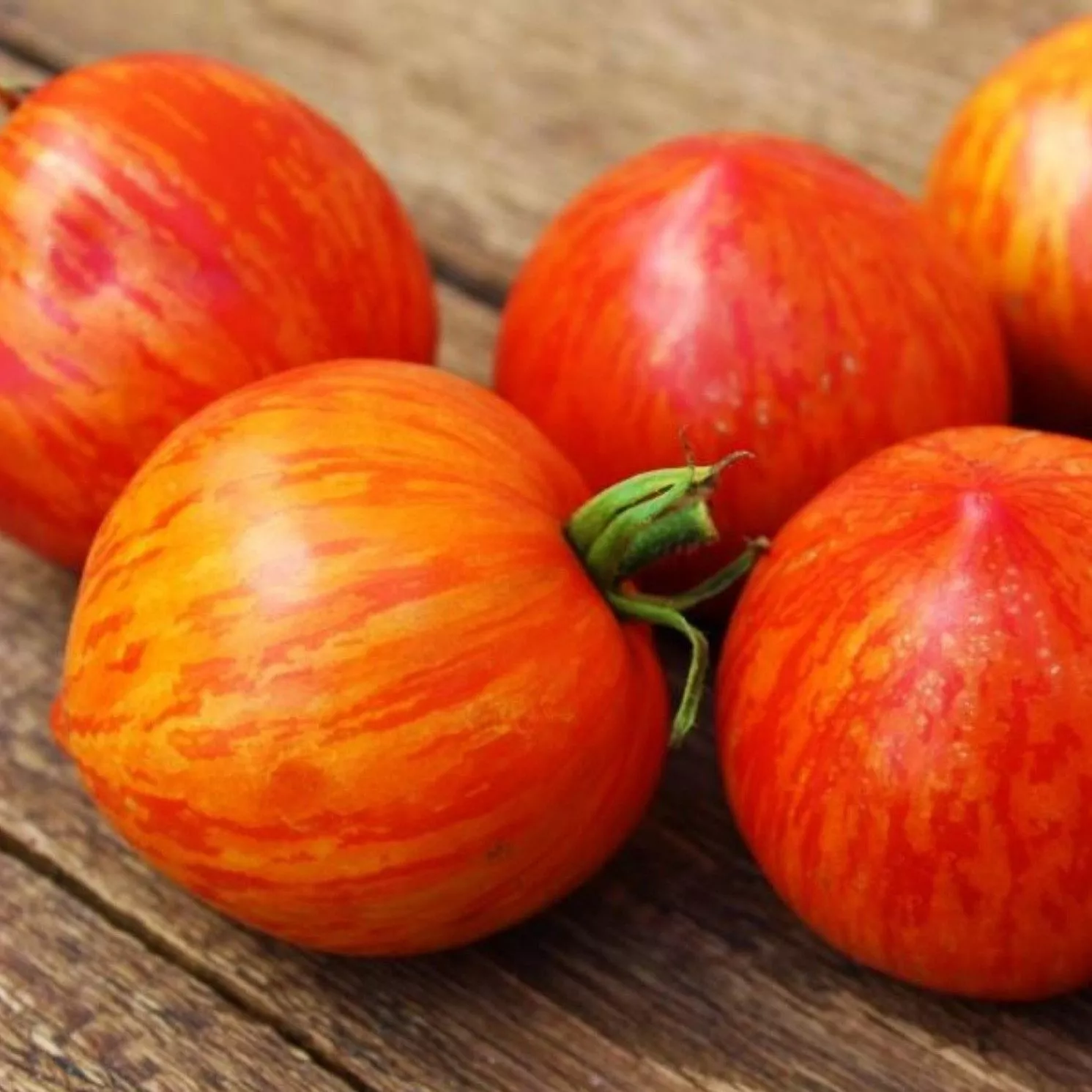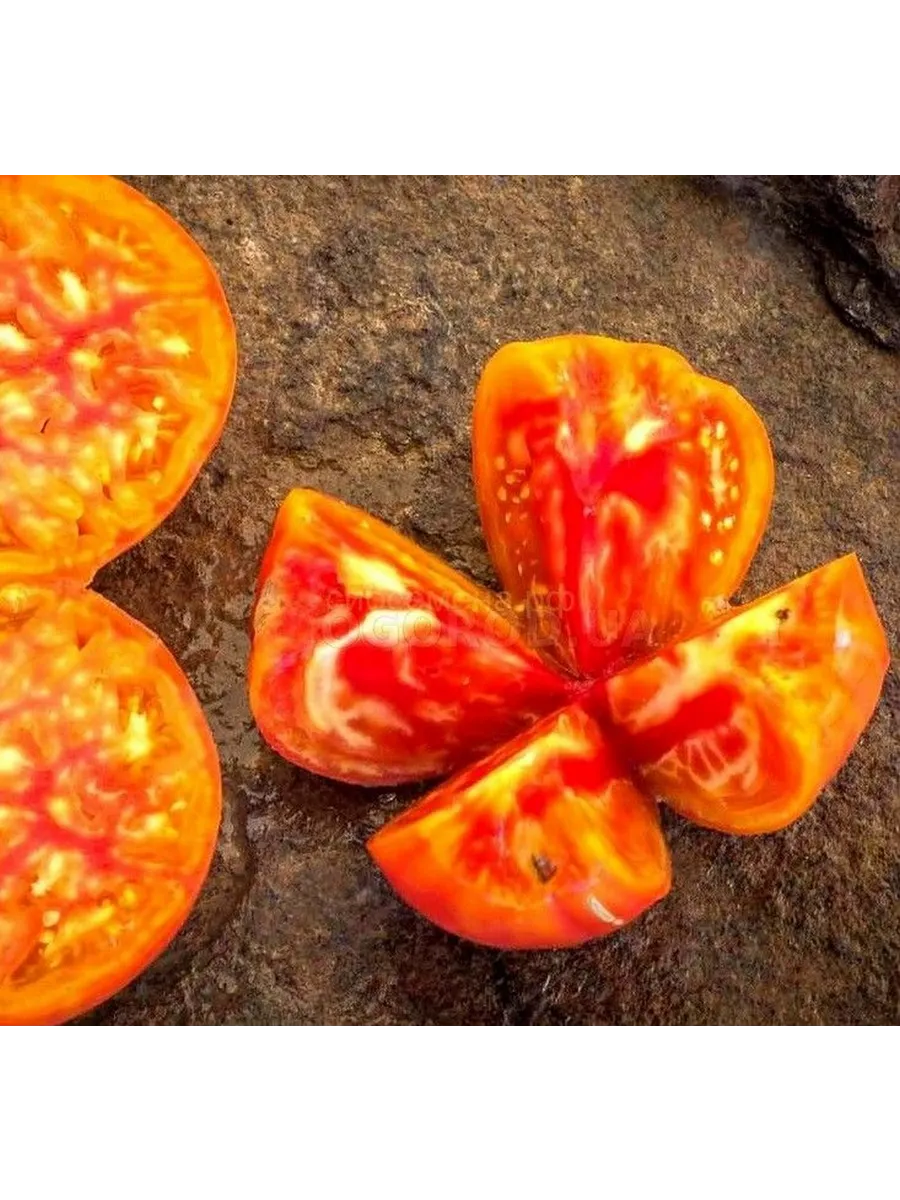 Окраска зрелого томата уникальна и декоративна: основной фон — глубокий, насыщенный красный, по которому проходят контрастные золотисто-желтые полосы и разводы. Такой окрас — не просто игра природы, а индикатор высокого содержания полезных пигментов: красного ликопина и желтых каротиноидов (бета-каротина). Интенсивность полосатости может варьироваться в зависимости от степени освещенности плода и температурных условий во время созревания.