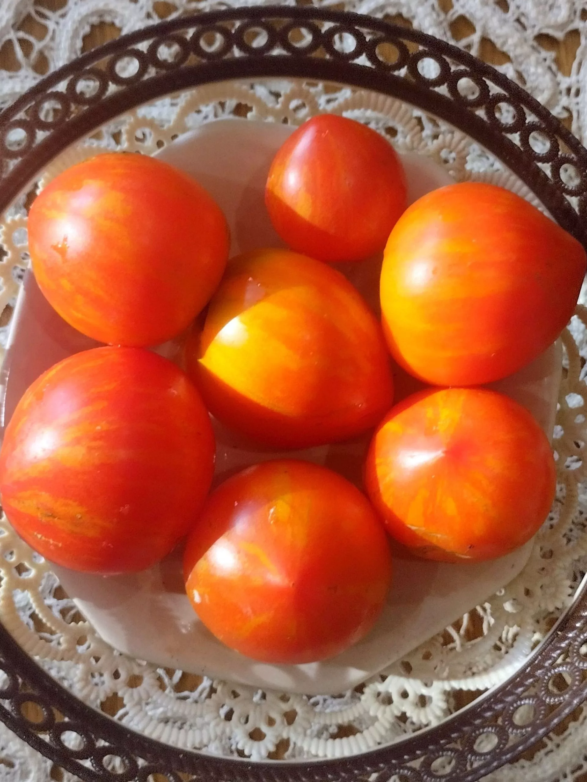 Внешний вид плодов делает этот сорт не только гастрономическим, но и эстетическим украшением огорода. Полосатые «сердечки» выглядят эффектно как на кусте, так и в собранном виде в корзине или на тарелке.