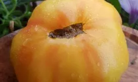- В свежем виде. Плоскоокруглые плоды с «пышными плечиками» и уникальным желтым окрасом с красными мазками станут украшением любого стола. Сладкий вкус с выраженными фруктовыми нотками высоко ценится для употребления в свежих салатах и нарезке.