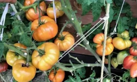 Это означает, что даже в открытом грунте кусты, особенно сформированные в 3 стебля, потребуют надежной опоры или подвязки к кольям. Подвязывают не только основной стебель, но и оставленные пасынки, так как под весом многочисленных крупных плодов (150-300 г) ветви могут надламываться.